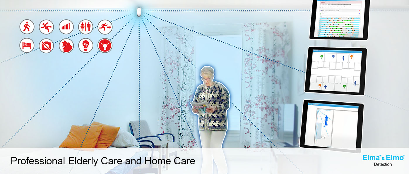 Elma® & Elmo® Detection is an innovative care technology sensor solution developed for both home care and care home like environments, enhancing elderly care with safety, efficiency and complete privacy.